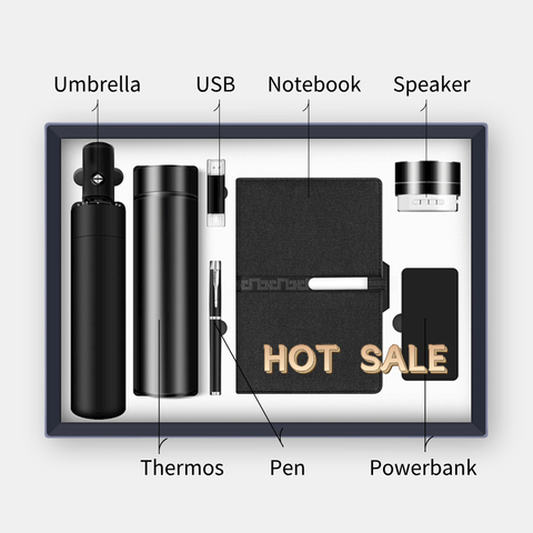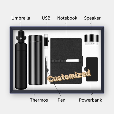 Premium Executive Logo personalizzato Thermos di lusso & ombrello & penna & Usb & Notebook & Speaker & Wireless Power Bank uomo compleanno scatola regalo